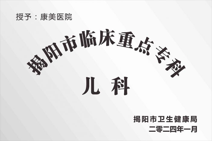 兒科爲揭陽市臨床重點專科,是本院的品牌科室,擁有多名本地區知名兒科專家,科室現有專業技術人員約30人,是一支技術過硬的專業醫護團隊。