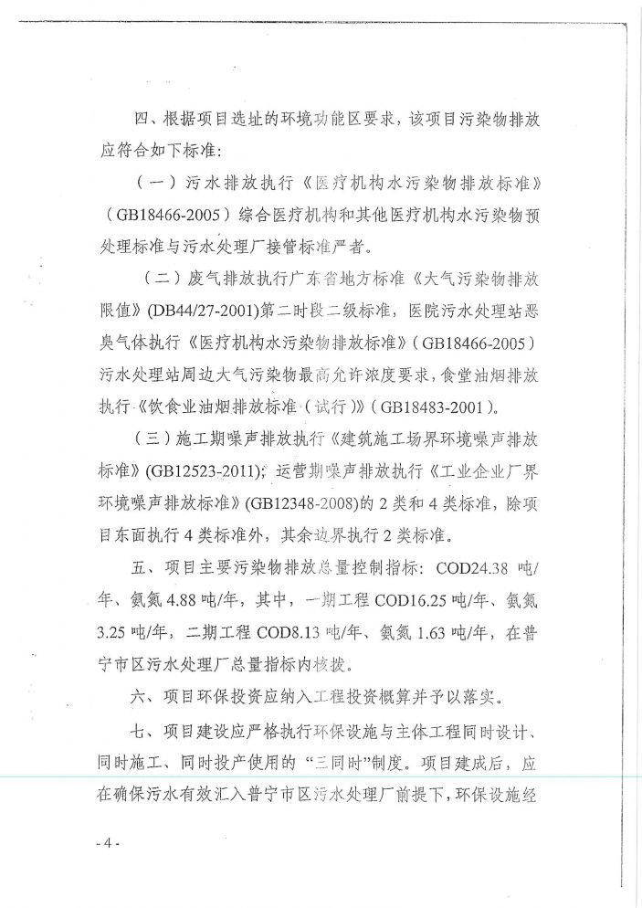 建設項目環境影響報告書批複-康美醫院(一期)環評驗收